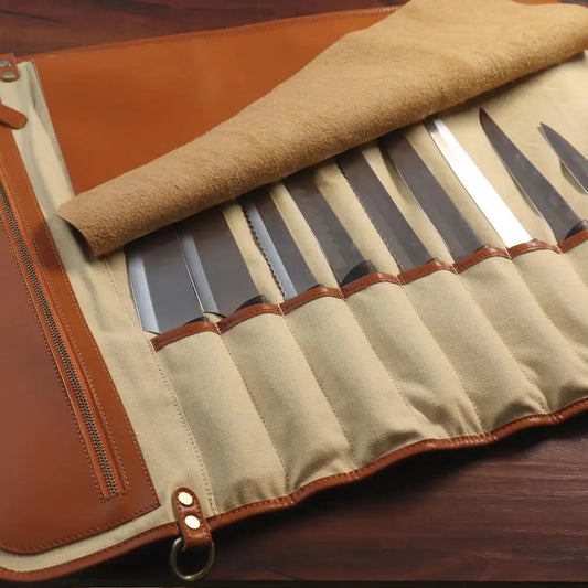 • WESSLECO Kitchen Chef Knife Bag Roll Bag Synthetic Leather Knife Carrying Storage Case with 10 Pockets