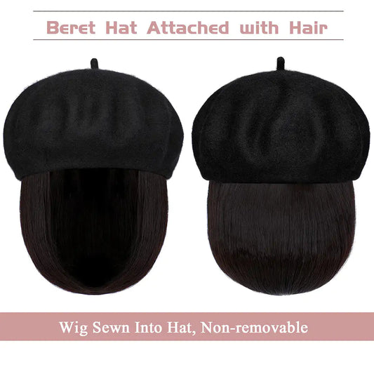WIGNEE Natural Wave Wigs with Bangs 100% Brazilian Human Hair Fashion Wave Wigs Natural Black (14 Inch)