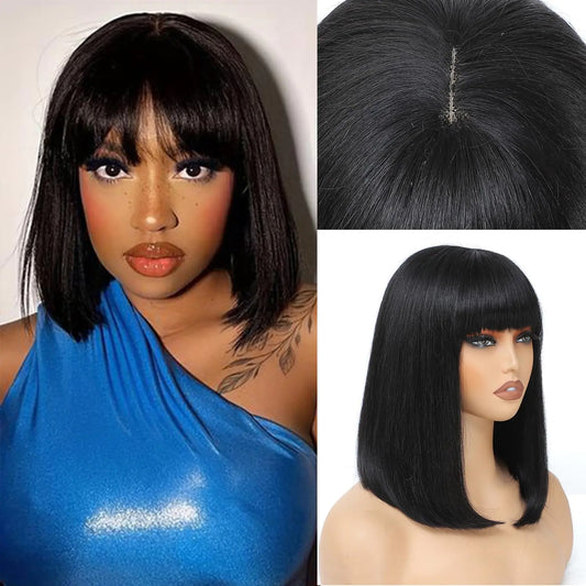 LILENAON Bob Wig Human Hair 12inch Human Hair Wigs with Bangs 3x1 Bob Lace Front Wigs Human Hair bob wig human hair glueless Wigs for Black Women Natural Black