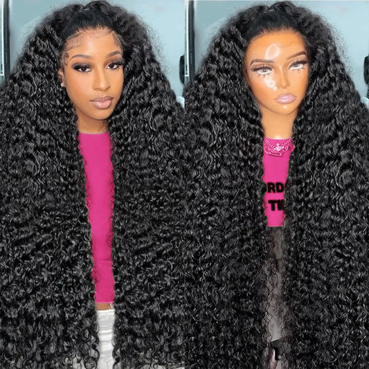 13X6 Lace Front Wigs Human Hair Curly Wigs Pre Plucked 200% Density HD Transparent Lace Frontal Braided Human Hair Wig Brazilian Deep Wave Lace Front Wigs Human Hair with Baby Hair 22inch