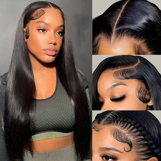 Straight Lace Front Wigs Human Hair 180% Density 13x4 HD Lace Front Wigs for Black Women 34inch Pre Plucked with Baby Hair Transparent Glueless Brazilian Straight Lace Frontal Wigs Natural HairLine