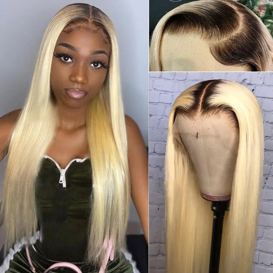 28 Inch Blonde Human Hair Lace Front Wigs for Black Women13x4 Free Part Brazilian Human Hair Wigs Pre Plucked Hairline with Baby Hair #1b/613 Ombre Straight Lace Front Wigs Full Ends…