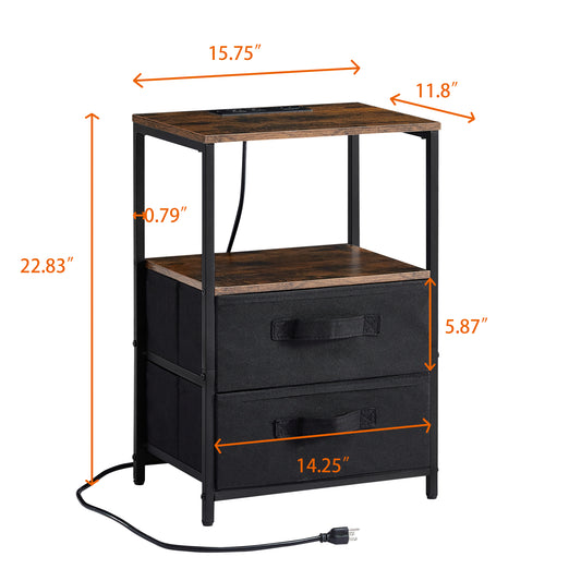 Tea table with charging station, bedside table with USB port, socket and cloth bag, 2 drawers