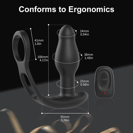 Anal Vibrator Prostate Massager with Remote Control Double Cock Ring Wearable Anal Toy Butt Plug Dildo Vibrator with 3 Thrusting