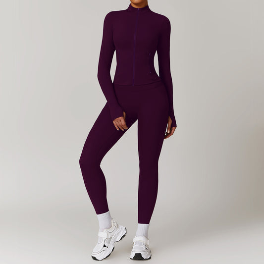 Stand up collar zipper yoga suit jacket windproof slim fit warm top sports running set