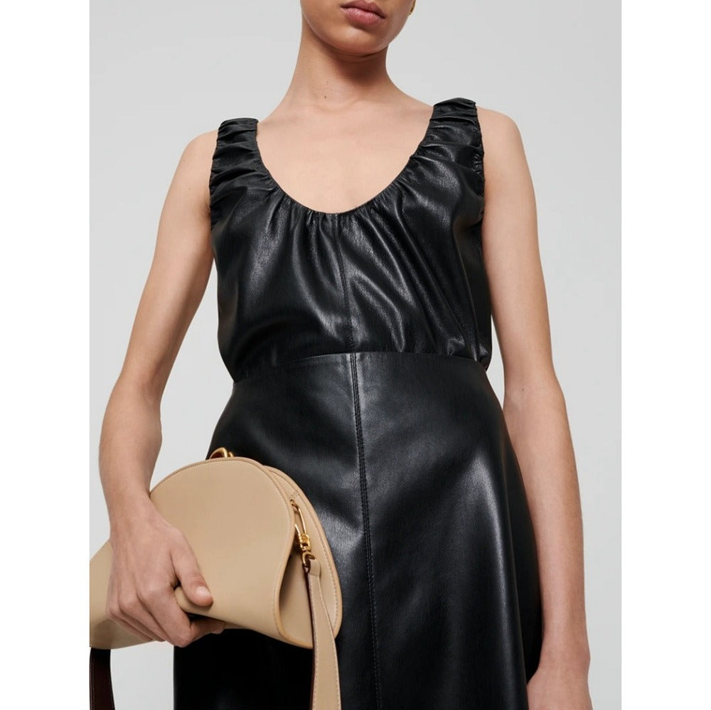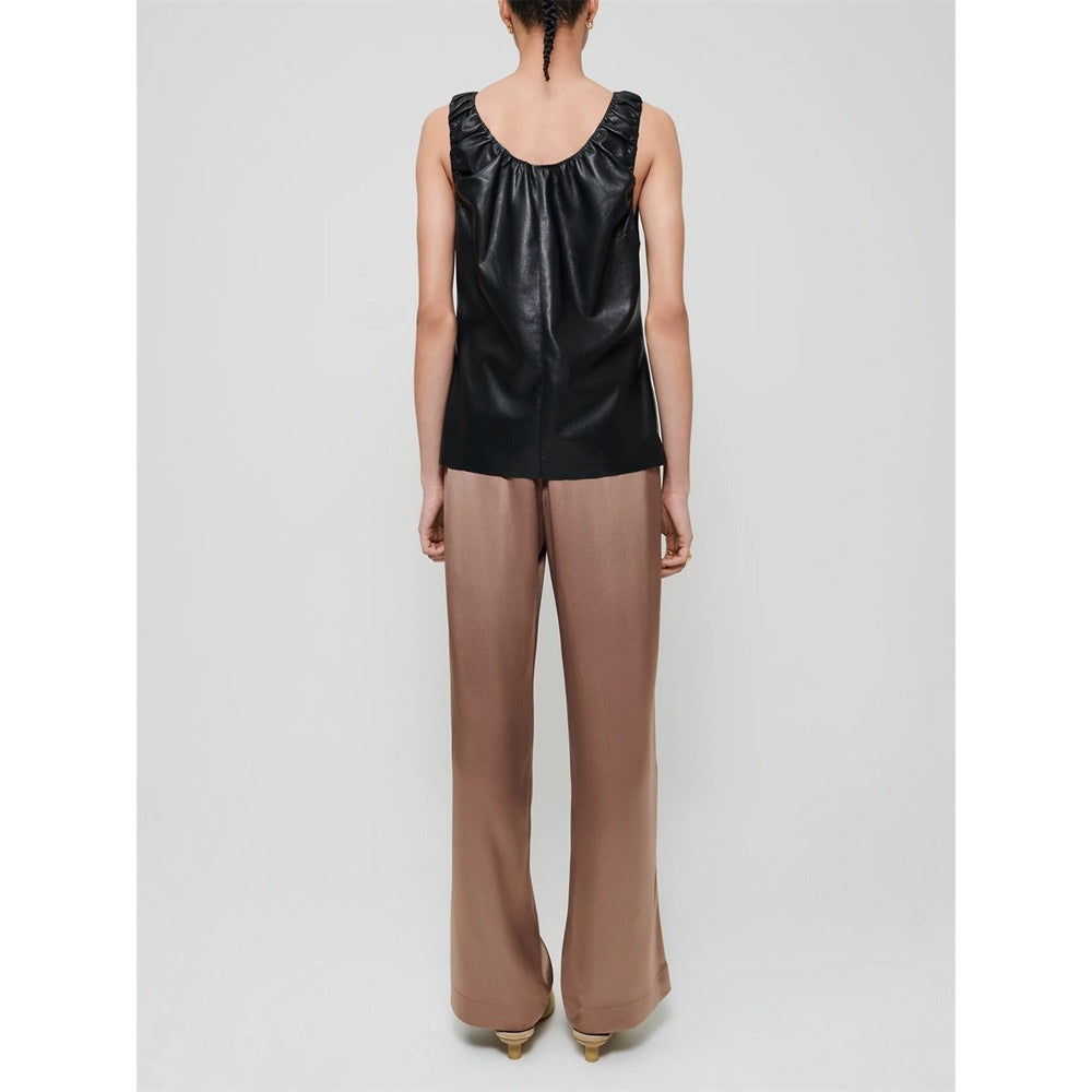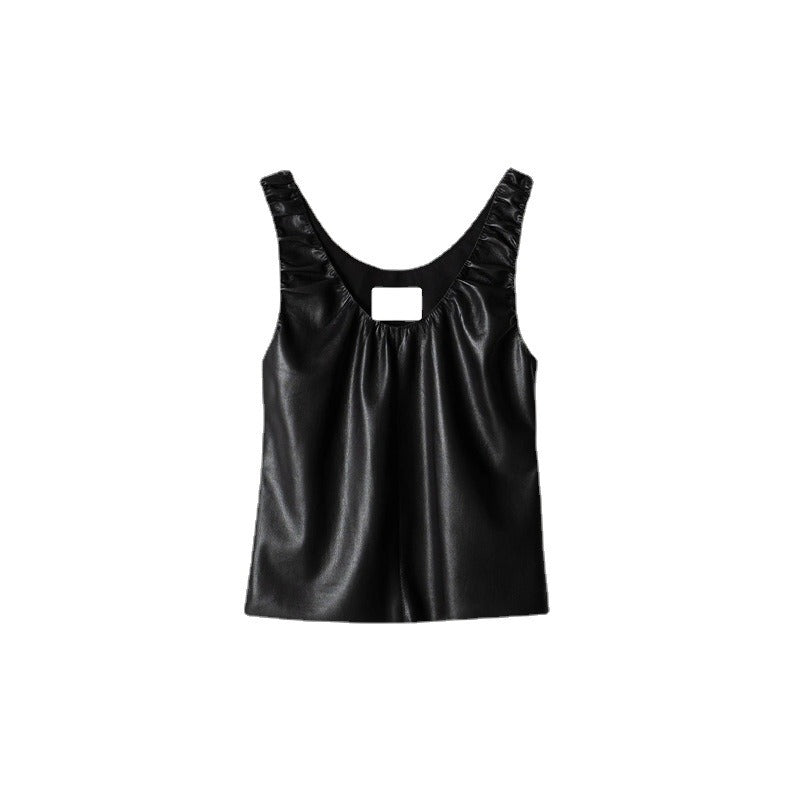 Artificial leather pleated sleeveless top vest for women