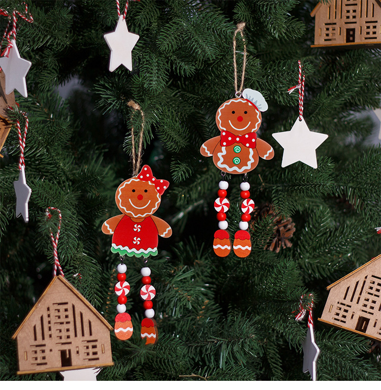 Christmas tree ornaments wooden gingerbread figurines couples long legs small ornaments