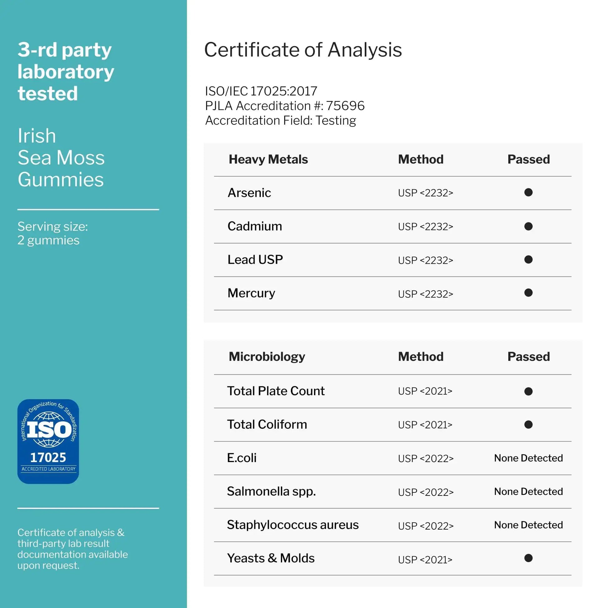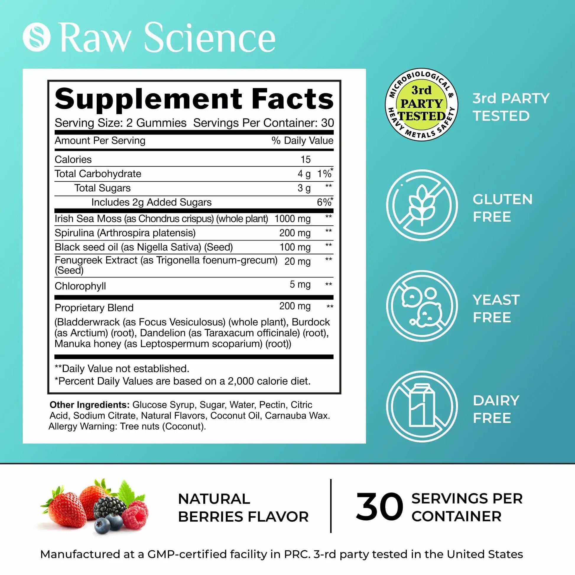Irish Sea Moss Gummies 60 Gummies Detox & Thyroid Support for Women & Men Black