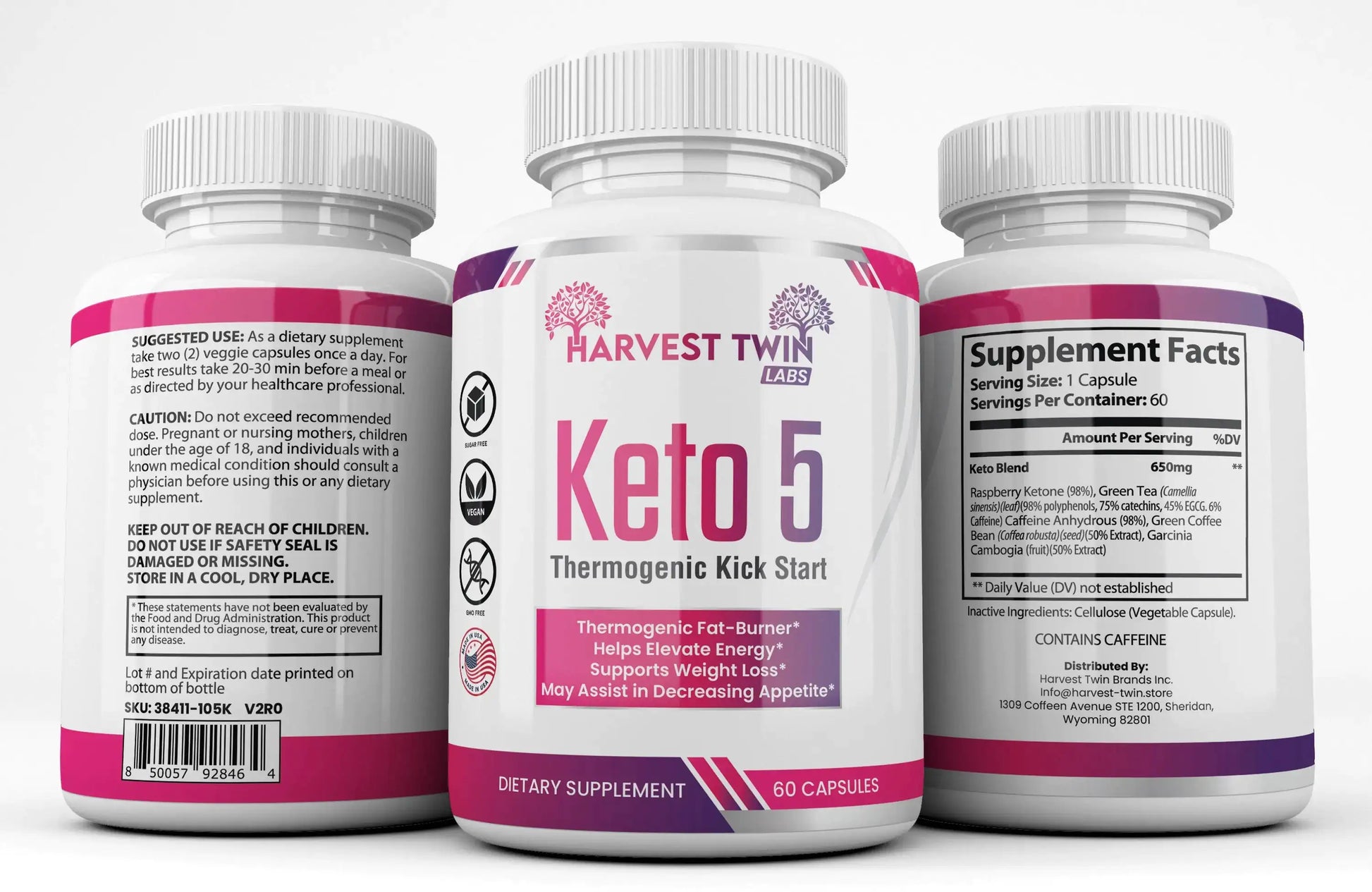 Harvest Twin Labs' Keto 5 (Best Seller Blend) provides superior results by kickstarting your metabolism, burning fat, elevating energy, and aiding weight loss. Get the boost you need and unlock your power with this revolutionary product!