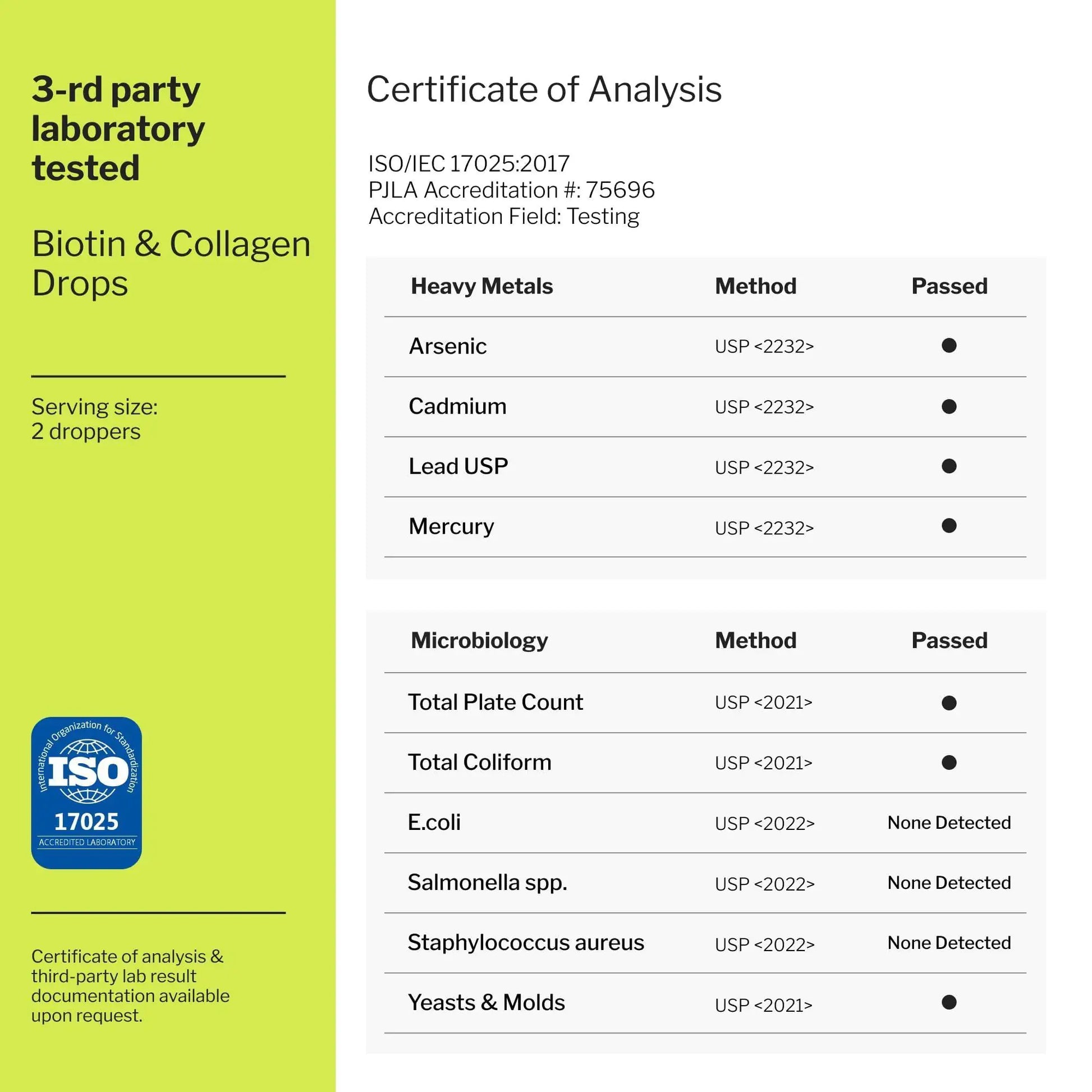 Liquid Collagen Biotin Supplement for Hair Growth 2 fl oz Drops Vitamin for Skin