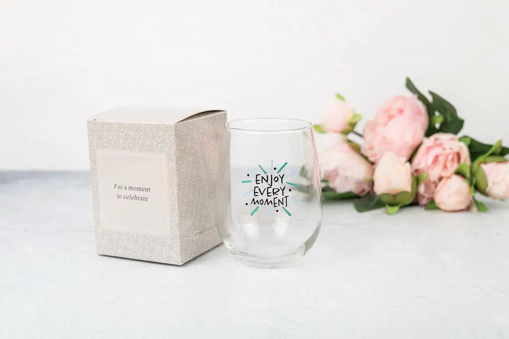 Lizush Trio Spa Gift Basket And Self Care Gifts For Women With Wine Glass, Candle, Grapefruit Body scrub, Eye Mask - Enjoy Every Moment - 4 Piece Set