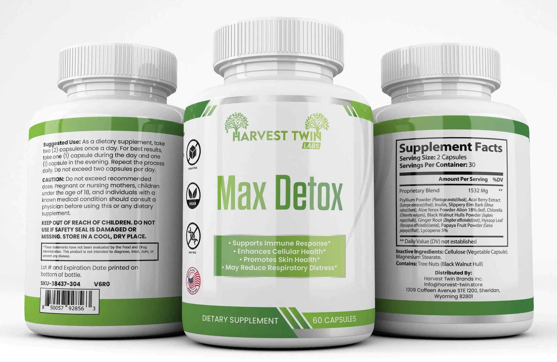 Max Detox from Harvest Twin Labs supports detoxification, enhances cellular health, and boosts immunity. Feel your best with a product that cleanses and nourishes your body from the inside out.