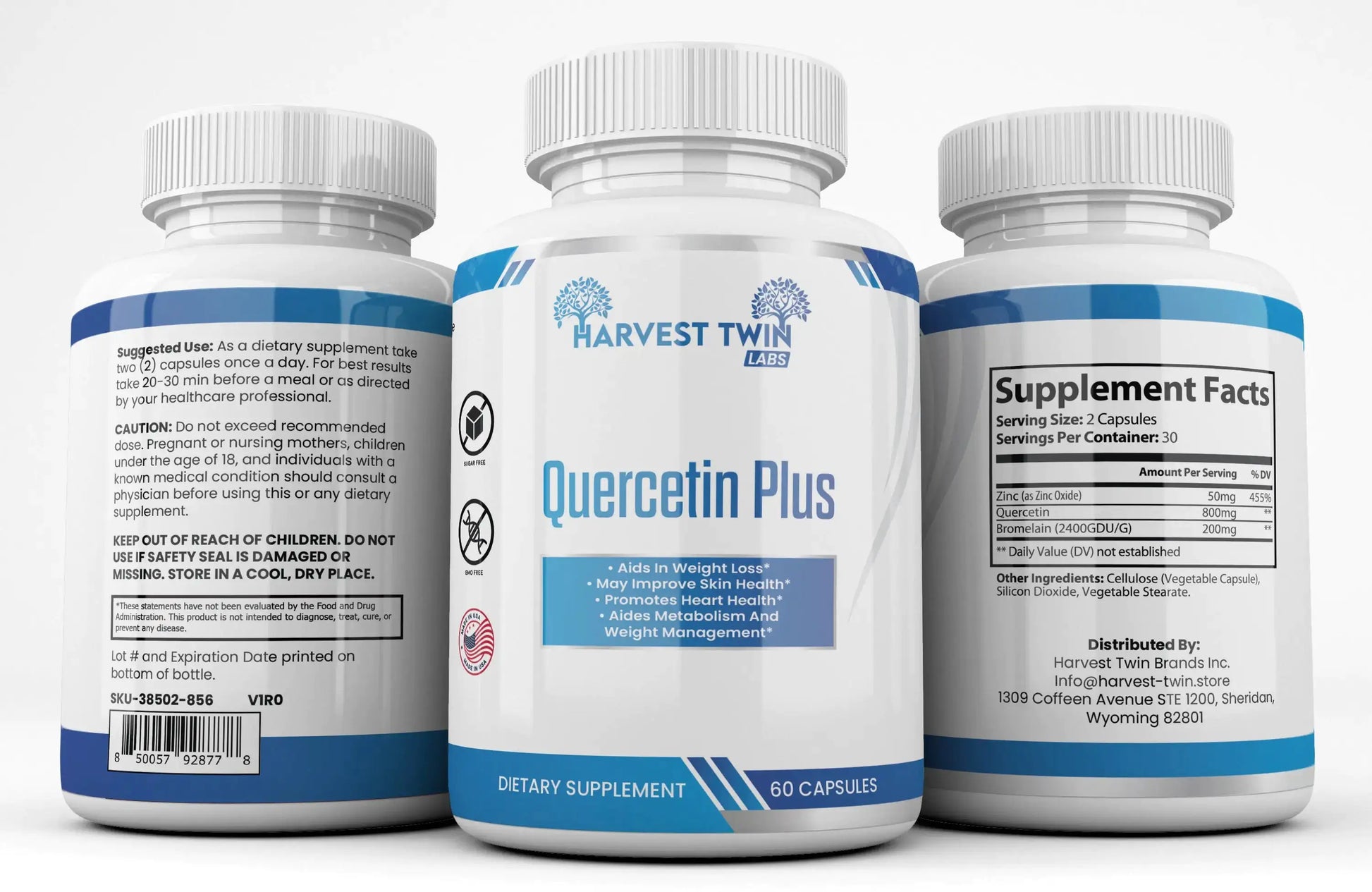 Harvest Twin Labs's Quercetin Plus packs a powerful nutrient punch for weight loss and heart health, with a unique blend of quercetin, resveratrol, and grape seed extract to promote healthy metabolism.