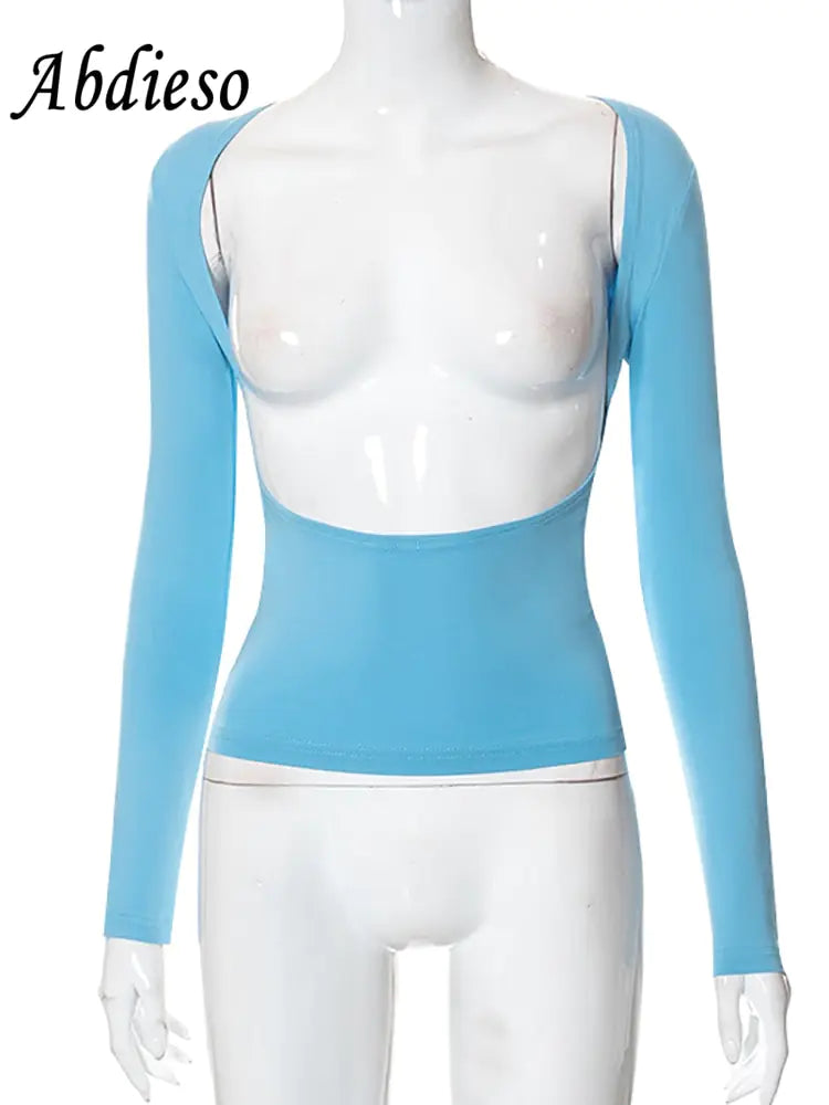 Upgrade Your Wardrobe: Elevate your autumn wardrobe with our Sexy Backless Long Sleeve Crop Top – because why blend in when you were born to stand out? #AutumnAllure #StreetwearSensation
