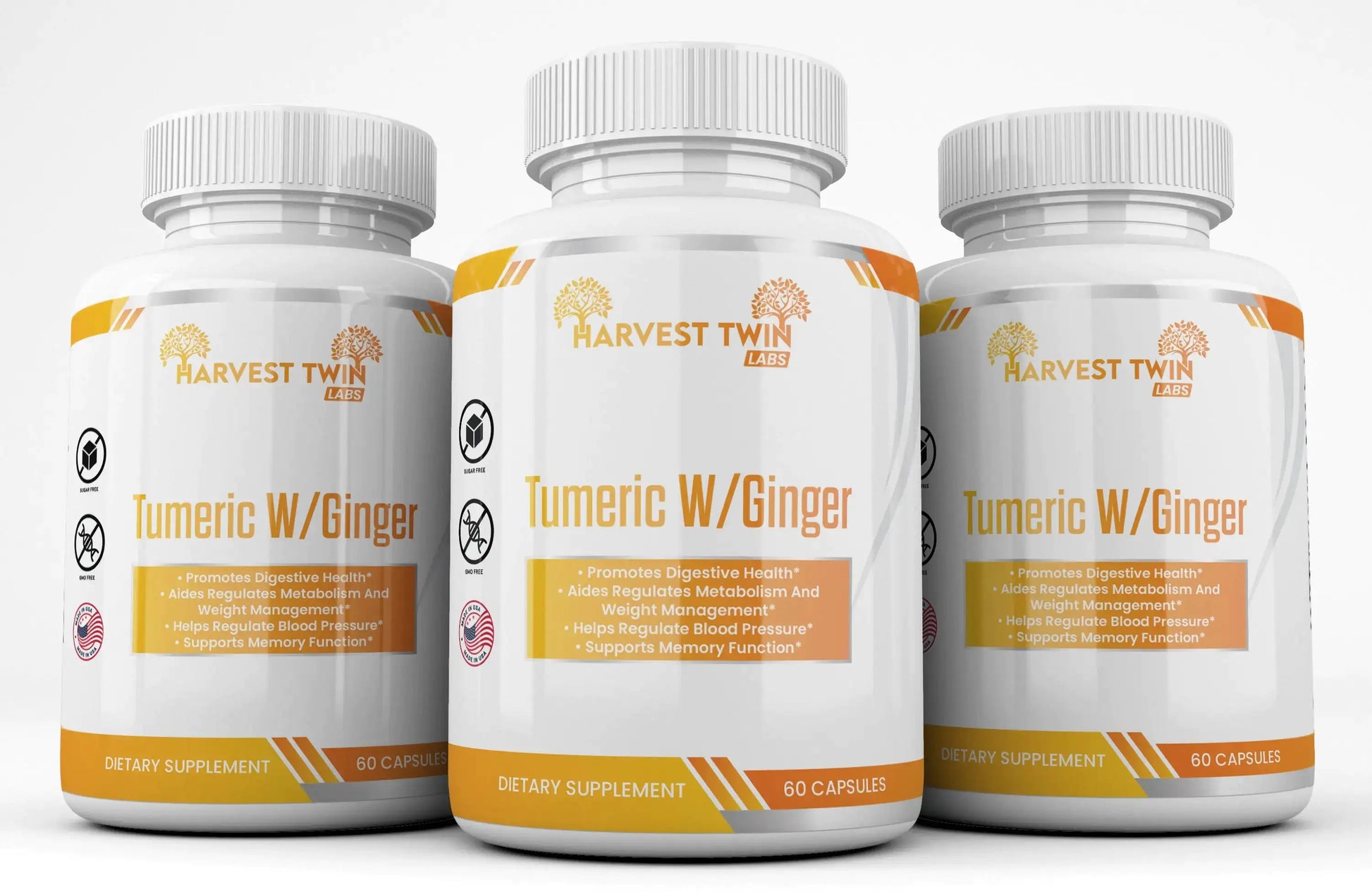 Harvest Twin Labs' Turmeric w/Ginger helps promote digestive health, support memory function, and aid in regulating blood pressure.